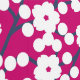 Unique and striking white cherry blossom floral pattern on a hot magenta background. Original art by Nic Squirrell.