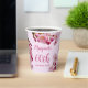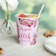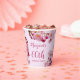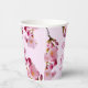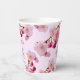 Serve your party drinks in style with this personalised cherry blossom design paper cup. Designed with realistic pink cherry blossom branches on a soft light pink background, it features space to add the birthday person's name and age. A beautiful choice for spring birthdays, baby showers or any feminine garden-themed celebration.