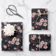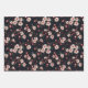 Cherry Blossom Flowers on Black Background Wrapping Paper Sheet