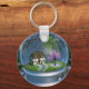 Inside a "snow globe" is a spring landscape with a cottage overshadowed by maple and cherry trees. The surrounding grassy field is filled with spring flowers, snapdragons and cornflowers in pastel colours. Roses and ivy climb the wall of the little house. The cherry tree is in full bloom, and instead of snow there are cherry blossoms swirling around in the globe and blanketing the grass.
