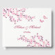 Pretty pink cherry blossoms and two cute butterflies on a white background. Custom bride and groom names in a classic timeless elegant script.