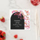 Elegant cherry blossom flower and black arch frame with vibrant typography on a white background birthday napkins.
