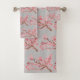 Cherry blossom Sakura Pink Floral Japanese Grey Bath Towel Set