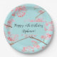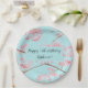 Cherry blossom Sakura Pink Turquoise Birthday Paper Plate