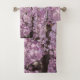 A Weeping cherry blossom tree on a background of pretty Spring lilac.