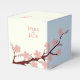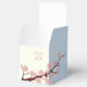 Delight your guests with these charming cherry blossom-themed favor boxes, perfect for adding a touch of elegance to your wedding reception. Featuring a delicate branch of cherry blossoms, the design incorporates soft, harmonious colors to match the rest of your wedding suite. The light yellow background adds warmth, while the accented blue provides an extra dimension, all tied together by the cherry blossom illustration which provides a romantic, nature-inspired look. Ideal for spring or nature-themed weddings, these favor boxes are a beautiful way to present your tokens of appreciation.