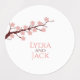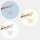Add a touch of elegance to your wedding stationery with this charming cherry blossom-themed round sticker. Featuring a delicate branch of cherry blossoms on a light blue, light yellow and white background, the design incorporates soft colours to match your wedding suite. Perfect for sealing envelopes, decorating favour boxes, or adding a personal touch to other wedding details, this sticker beautifully ties your nature-inspired or spring wedding theme together.