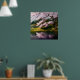 This AI-created downloadable art features a panting of cherry blossom tree at a lake.