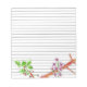 A pretty lined notepad decorated with soft grey lines and a blooming fruit blossom tree branch with pink flowers drawn in pen and ink with watercolor. Very nice for lists and notes!