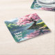 Cherry Blossom Tree by River Tranquil Landscape Square Paper Coaster