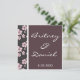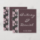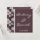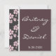 Cherry blossom wedding invitations feature little flowers along the left hand side of each invitation--both front and back. Colours that are used in this design are shades of pinks, black, white and chocolate brown. You can fully customise the font theme, colouring and wording by either using the personalise feature to the right of the demo invitation or by clicking on the orange "customise button" below it. The customise button will allow you to make extensive changes to text styles. Each comes with a white envelope. If you love the design, click on "natureprints" or "store" above to find matching envelope seals, RSVP cards, programs, and other wedding stationary in this theme. You'll also find other cherry blossom wedding invitation designs, as well as other elegant invites.