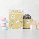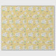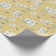 Elegant white cherry blossoms with honey bees flying between the flowers over a satin gold background to wrap baby shower gifts for the mother-to-be, or any greenery theme outdoor event.
