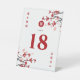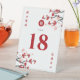 Red/White Cherry Blossoms Or Sakura Spring Flowers And Simple Round Circle Double Happiness Chinese Wedding Table Number Pedestal Sign.