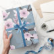 Cherry Blossoms Floral Dusky Pink Dusty Blue Wrapping Paper