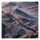 Serene landscape at dawn, surrounded by vibrant cherry blossoms,
