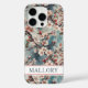 Cherry Blossoms Teal Sakura Print Monogrammed Case-Mate iPhone Case
