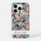 Cherry Blossoms Teal Sakura Print Monogrammed iPhone Case