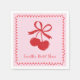 Cherry Bow Pink & Red Hand Drawn Bridal Shower Napkin