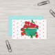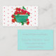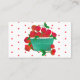 This business card has a bowl of red cherries in a blue bowl with red dots. There is plenty of room for your personal messages on the front and back. Easy to customise font style, colour and size, or if you remove it altogether these can be used as tags. Coordinate with my other office products including clipboards, labels and stationery. This design is also available on my kitchen and tabletop items including napkins, plates and towels.