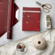 Cherry Lacquer Golden Star Wrapping Paper. Perfect for wrapping your holiday gifts in a deep rich colour.
