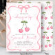 Cherry on Top Baby Shower Bow Invitation" – the perfect digital invitation for a baby shower celebration with a cherry and bow theme. This sweet and stylish design is ideal for baby girl showers, summer and spring-themed parties, and whimsical celebrations. Featuring adorable cherry graphics and elegant bows, it's great for creating a fun and cohesive party look. Easily customise, download, and print for a beautiful and memorable baby shower. Pair it with matching cherry-themed decorations, party favours, and accessories for the ultimate celebration!