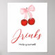 Make your event special with this Cherry Baby Shower with our cute and lovely printable Drinks Sign featuring adorable Coquette Baby Shower theme. Download, personalise, and create lasting memories with this perfect touch for your joyous celebration!