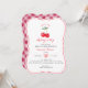 Celebrate your sweet little one on the way with this charming Cherry on Top baby shower invitation. Featuring watercolor red cherries, playful typography, and a pink gingham back, this design blends classic retro style with modern flair. Perfect for a girl’s shower, it sets the tone for a cheerful and fun celebration. Personalise with your party details for a unique touch your guests will love.