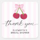 Cute "She's the Cherry on Top" theme bridal shower with cute pink bow coquette design thank you sticker