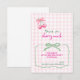 Sweet and charming, this cherry-themed first birthday thank you card is perfect for your little girl's big day. Featuring watercolor cherries, a pink gingham background, and playful script fonts, it's ideal for summer celebrations or picnic-style parties. Personalise it with your child's name and event details for a one-of-a-kind keepsake that guests will adore!