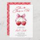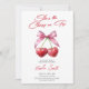 Celebrate the sweetest arrival with the Little Cutie Is On The Way Editable Baby Shower Invitation. This charming design features delightful cherry illustrations paired with a coquette pink bow, creating a playful and modern look. Perfect for a baby girl shower, the vibrant berries theme adds a touch of whimsy and elegance, making it ideal for a summer celebration. Easily customizable, this invitation allows you to edit the text to include all your shower details.
