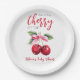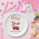 Cherry on Top Pink Bow Girl Baby Shower Paper Plate