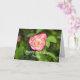 Raindrops cling to the petals of a cherry parfait rose. The cherry parfait is a grandiflora rose, which is white with red edges and has a long blooming period. You can personalize this card with any name or occasion.