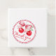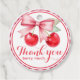Add a sweet finishing touch to your party favours with this round cherry-themed gift tag. Featuring two bright watercolor cherries tied together with a soft pink bow, framed in a red gingham border on a white textured background. Perfect for baby showers, bridal showers, birthdays, or any celebration where you want to say "thank you berry much." Customise with your own text to match your event theme.