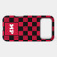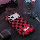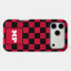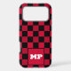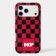 Make a powerful statement with this striking Cherry Red and Black Checkerboard phone case. This design features a vibrant, deep red paired with a classic black grid for a look that is both retro and undeniably modern. A crisp white monogram box sits at the center, providing a sharp contrast that makes your custom initials pop. With its signature technical dot-texture on the red squares and a bold color-block aesthetic, this case is the perfect accessory for those who want their tech to stand out from the crowd.