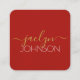 Cherry Red Black Gold Personalised Name Minimalist Square Business Card