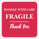 Cherry Red Fragile Label Square Sticker features simple fragile label design & text template in cherry red background.A perfect design to use for packaging or shipping.