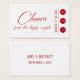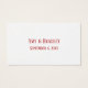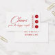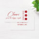 Want to offer your guests a way to enjoy several alcoholic beverages during your reception or party without being committed to an open bar? These 3 punch drink tickets could be ideal for you! In a beautiful, slim, slanted script font, the cherry red typography graphic overlay reads "Cheers from the happy couple". Rotated, to the right and placed between slim red lines are the words "Redeem at the Bar"; this text is editable. Three numbered circles were added to the right so your guests can have their cards punched at the bar as they're served up to three complementary drinks. The other side has template fields set up for your names and date. // 78 // Designed by Melody Watson for Paper Muserie.