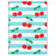Add a splash of fruity fun to your everyday essentials with this vibrant cherry pattern. Featuring bright red cherries with green leaves set against alternating blue and white stripes, this design blends retro charm with playful energy—perfect for gifts, accessories, and home decor.