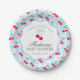 Cherry Sweet Blue Coquette Bow Gingham Baby Shower Paper Plate