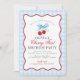 Cherry Sweet Blue Coquette Gingham First Birthday Invitation