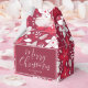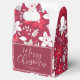 A formal holiday-themed favour box from your family to your guests. It features wild florals in a Christmas style with red, white, and pink colours.