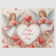 This Valentine's Day tissue paper features a charming watercolor illustration of vintage-inspired cherub angels, accented by classic red hearts and pink roses. It is suitable for wrapping gifts or creating decoupage crafts.