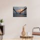 Photo poster looking between the two bridges of the Chesapeake Bay bridge at sunset. As the sun sets in this beautiful original photograph, the water reflects the orange, pink and yellow sunset. The swirling clouds in the background add a unique touch. This poster would make a great addition to any room in your home or office. It would also make a great gift for someone who loves the water or Maryland or bridges.