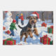 Chesapeake Bay Retriever Snow with Christmas Hat Tea Towel
