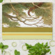 16” x 24” pale green kitchen towel with a vintage image of Alice in Wonderland's mischievous Cheshire Cat in a tree. Green and yellow stripe borders. See matching cloth napkin, paper cocktail napkin, cloth placemat, paper placemat and coasters. See the entire Wonderland Kitchen Towel collection in the FOOD/BEV | Linens section.