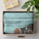 This design is inspired by original artwork from Alice's Adventures in Wonderland by Lewis Carroll. The Cheshire Cat is on a branch with flowers on a turquoise background. Perfect for decoupage artwork, paper crafts, or gift wrap.