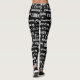Cool leggings for chess lovers, printed with chess game words and phrases. White text over black background (background colour can be changed by you).