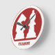 Great quality clock and very well made. Just what I was looking for to finish my hall off. Looked in loads of other websites and eventually found exactly what I was looking for at Zazzle. Designe and colour is perfect. I just love it. Bought the medium size and fits well for where I was placing it.