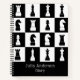 Personalised spiral notebook with a black and white chess game figures pattern. Personalise it with your own name and text by typing it in the template fields.