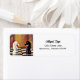 This chess address label design features classic chess piece knights on a chess board with orange and yellow accents. Personalise easily with a name and address!